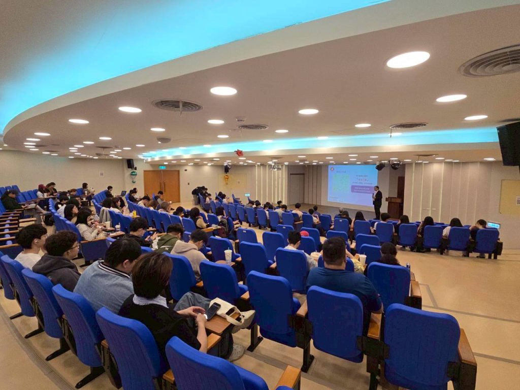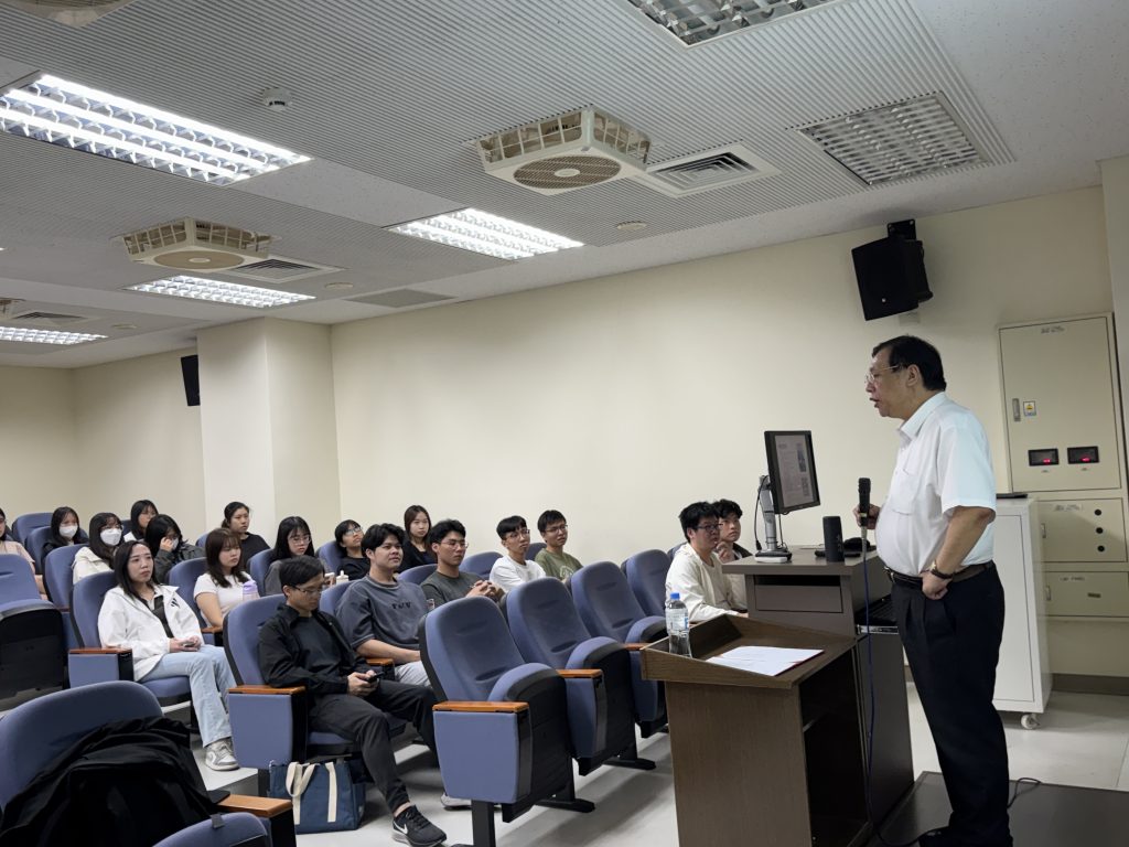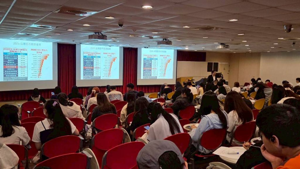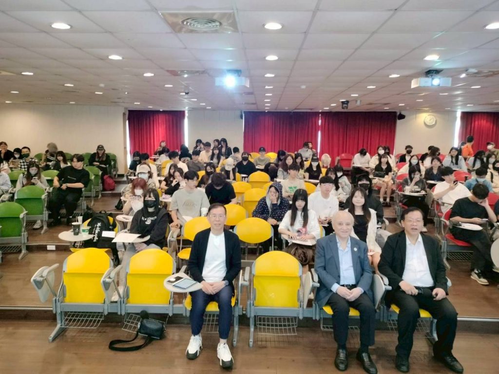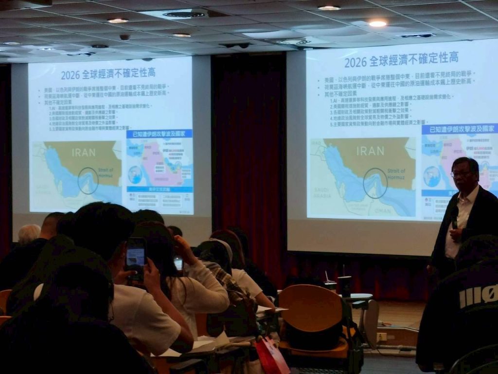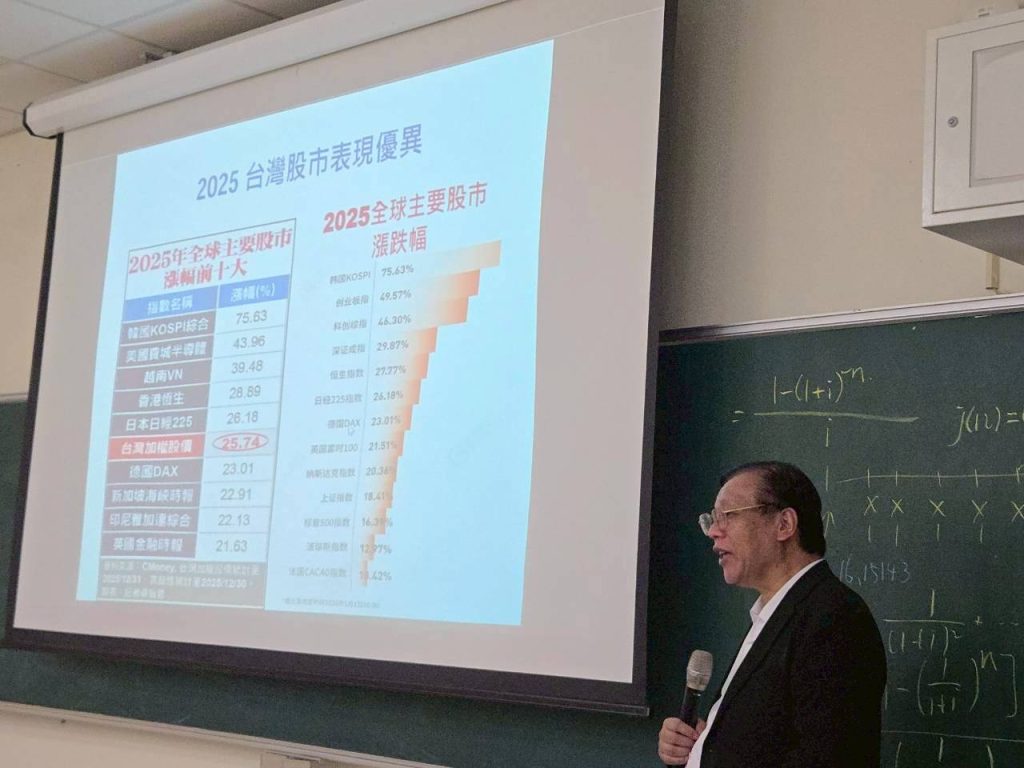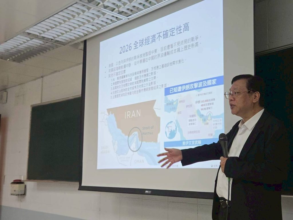 協會理事長林建甫教授深入淺出分析2026全球財經情勢,透過數據與同學講述美國貨幣政策、AI人工智能、金融業經營與金融證照的重要性。