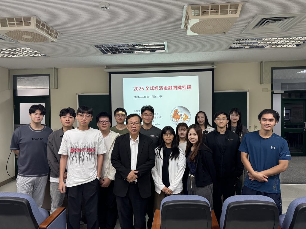 台灣金融教育協會與AFMA高級金融管理師委員會,於4月28日下午在臺中科技大學舉辦專題演講「2026全球經濟金融關鍵密碼」,由台灣金融教育協會理事長林建甫擔任主講。