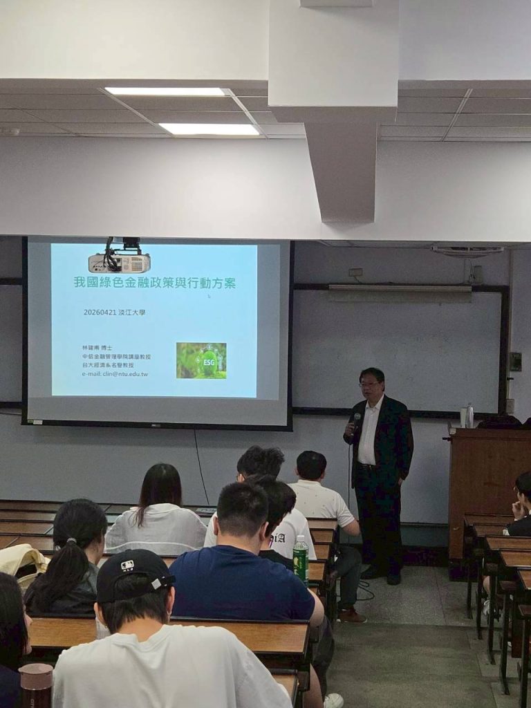 台灣金融教育協會與AFMA高級金融管理師委員會,於4月21日下午在淡江大學商管學院舉辦專題演講「我國綠色金融政策與行動方案」,該演講由台灣金融教育協會理事長林建甫擔任主講。