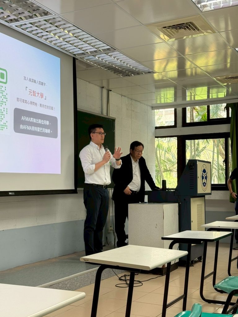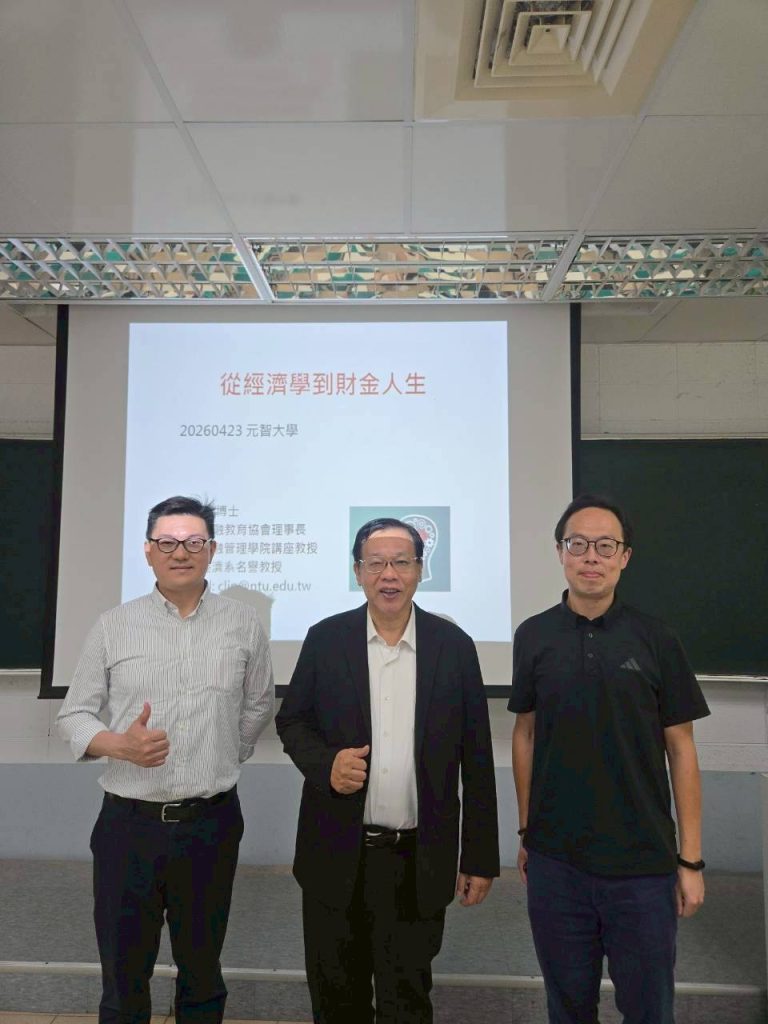 台灣金融教育協會與AFMA高級金融管理師委員會,於4月23日上午在元智大學舉辦專題演講「從經濟學到財金人生」,由台灣金融教育協會理事長林建甫擔任主講與同學分享與探討。