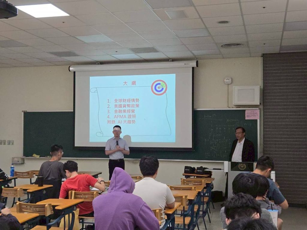 協會理事長林建甫教授帶領同學們深入淺出的探討全球財經情勢、佈局 AI 時代財金競爭力、自我管理與專業證照學習。