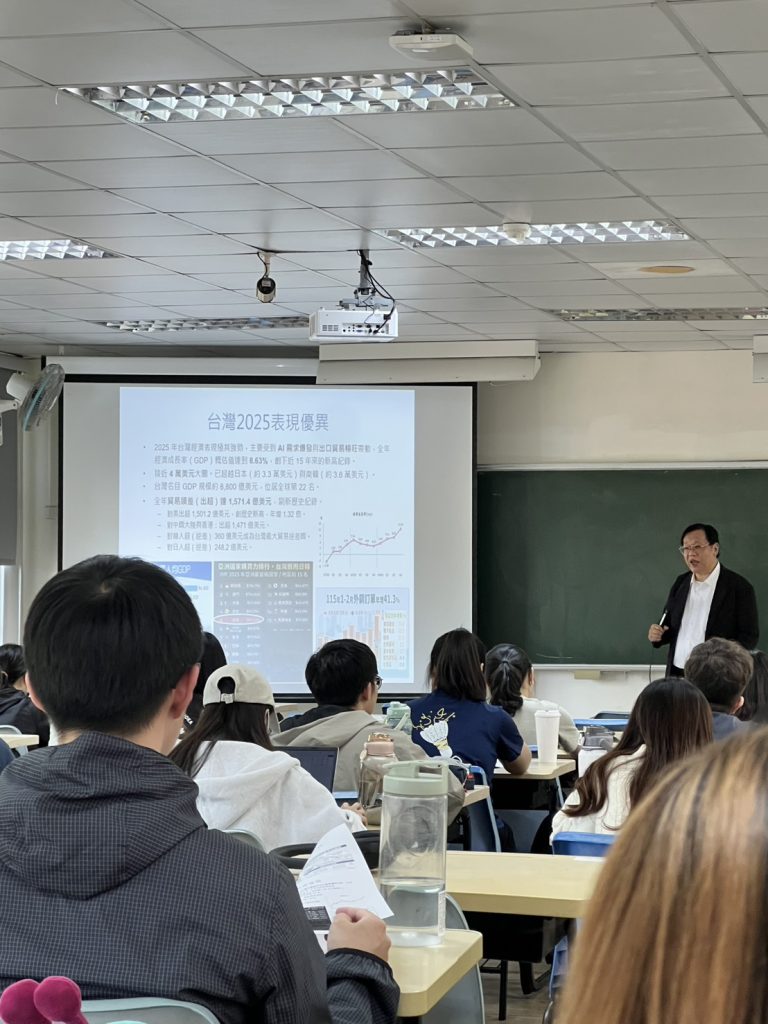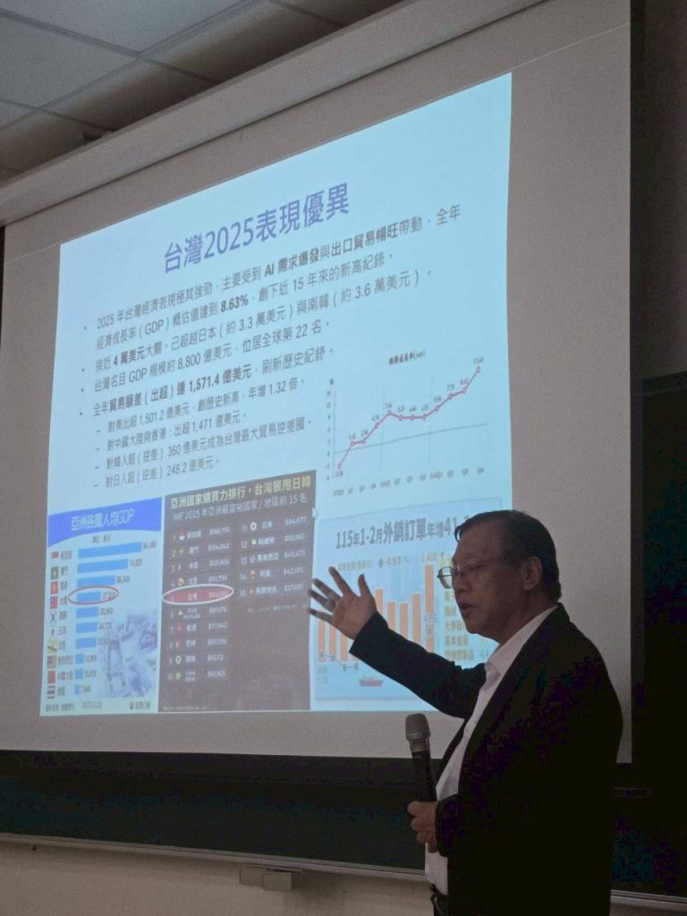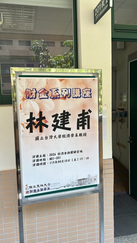 台灣金融教育協會與AFMA高級金融管理師委員會,於4月10日下午在高雄大學財金系舉辦專題演講「2026 經濟金融關鍵密碼」,由台灣金融教育協會理事長林建甫擔任主講與財金系同學分享與探討。