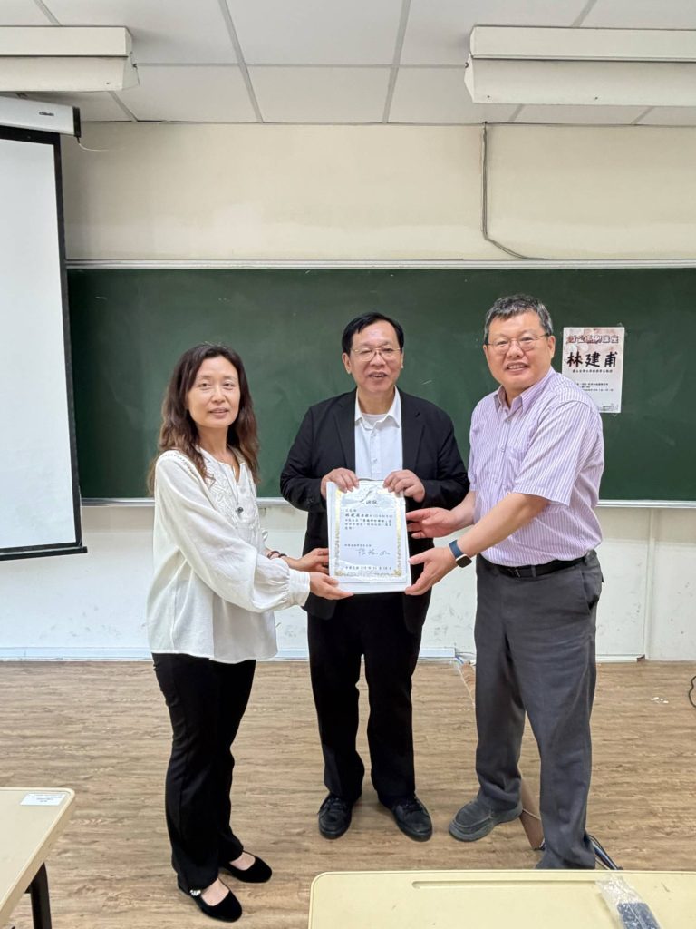 由左至右分別為高雄大學財金系系主任楊琬如教授、台灣金融教育協會理事長林建甫、高雄大學財金系張志向教授。